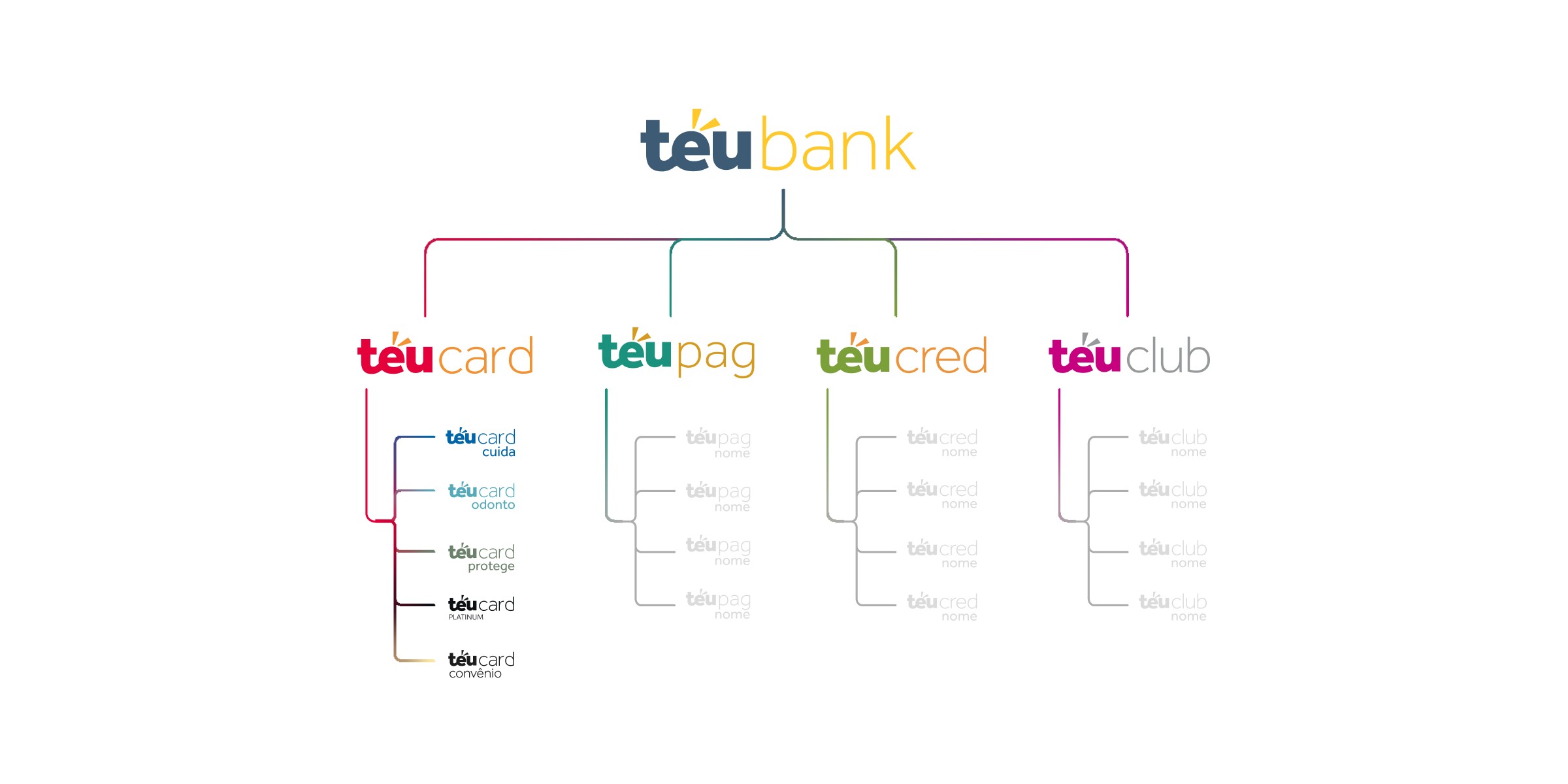 Com a expansão do TeuCard, houve a necessidade de uma reorganização dentro do universo da marca: a criação do TeuBank e seu posicionamento como marca "guarda-chuva" do grupo para melhor adequação ao modelo de negócio. Assim, cada uma das marcas e submarcas ocupa seu lugar estratégico dentro desse novo universo.